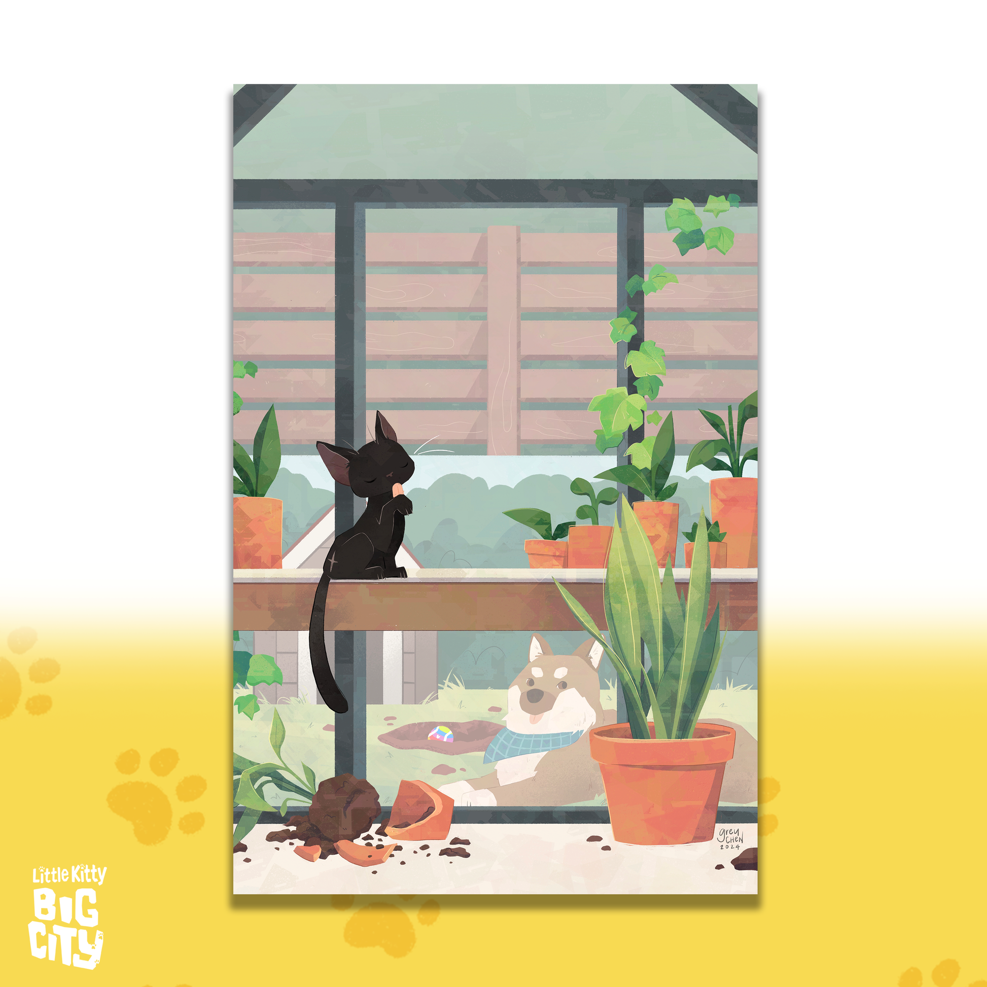 Mischief in the Greenhouse Lithograph Print